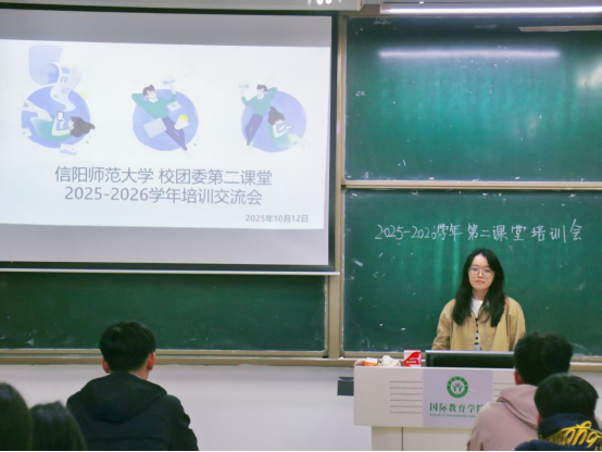 10月12日下午,为帮助新生进一步了解“到梦空间”第二课堂,推动“第二课堂成绩单”制度深入实施,促进第二课堂科学化、系统化、规范化开展,国际教育学院于俊采楼202召开“2025-2026学年第二课堂”培训会。
