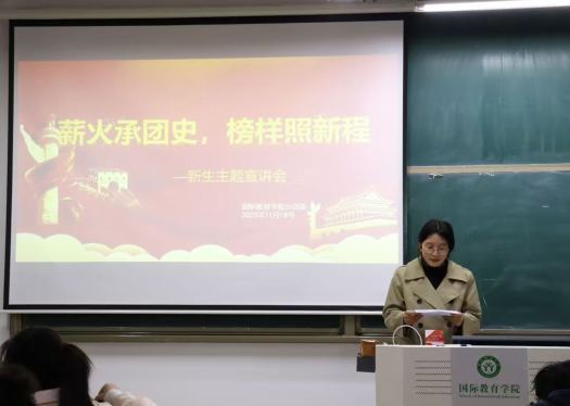 为进一步发挥优秀学生的榜样引领作用,帮助2025级新生明晰大学发展路径、提升综合素养,11月18日下午,国际教育学院于俊采楼302教室成功举办“薪火承团史,榜样照新程”主题宣讲会。现场秩序井然,氛围热烈,新生积极参与,展现出良好的精神风貌。
