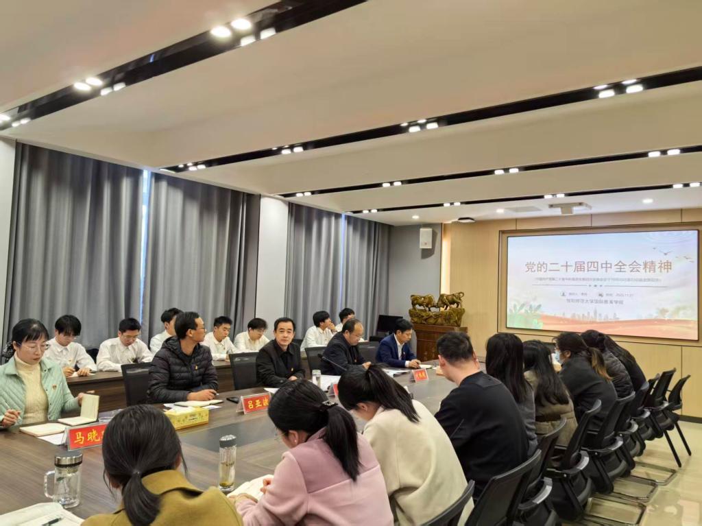11月21日,国际教育学院在俊采楼115会议室召开2025年下半年预备党员入党宣誓大会暨深入学习党的二十届四中全会精神专题党课。学院领导班子成员和全体师生党员参加会议。会议由国际教育学院院长刘林超主持。